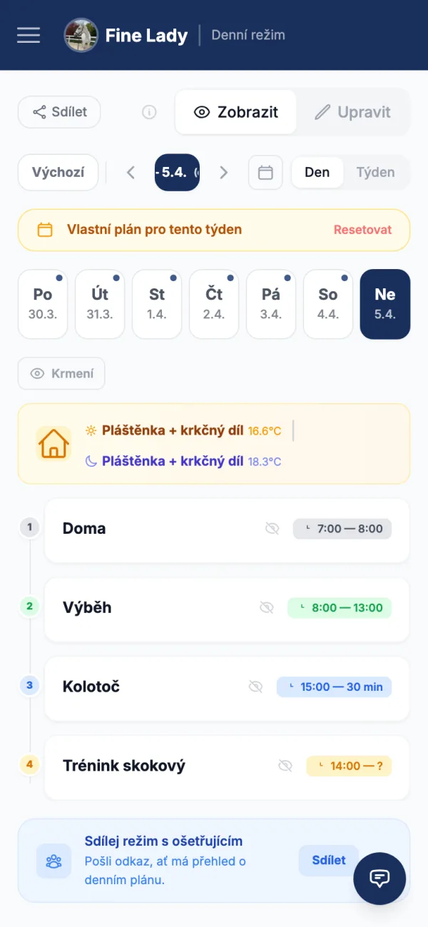 Zaregistrujte se zdarma a mějte přehled o koních, týmu a počasí na jednom místě.